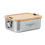 Posuda za ručak od nehrđajućeg čelika sa kopčama za bočno zatvaranje i poklopcem od bambusa. Zapremina: 750 ml.