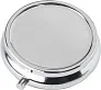 Kutija za tablete od metala s unutrašnjim PP materijalom i 3 odjeljka. Sjajna unutrašnjost može se koristiti kao ogledalo. Pakirano pojedinačno u bijelu kutiju.