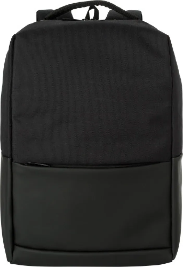 Ruksak od poliestera (600D) za 15-inčni laptop. Jedan veliki pretinac s patentnim zatvaračem na vrhu s više odjeljaka unutra. Mali pretinac s patentnim zatvaračem na prednjem dijelu. Ojačani stražnji dio i podesive naramenice.