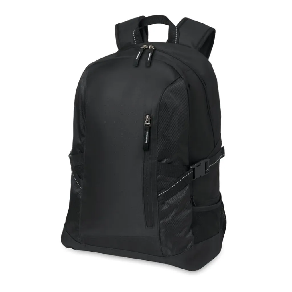 Ruksak za prijenosno računalo 15" napravljen od 600D poliestera s ripstop detaljima. Sadrži unutarnji pretinac za laptop, jedan glavni prednji džep s patentnim zatvaračem i 2 bočna pretinca. Podesivi remen.