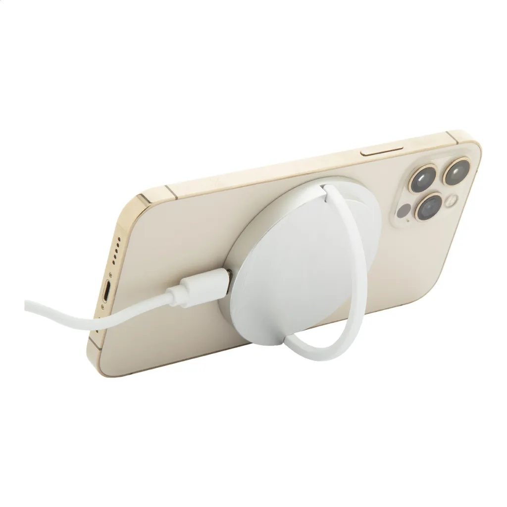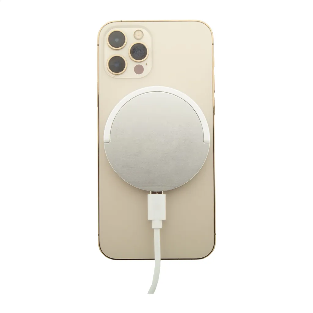 Magnetski bežični brzi punjač (15 W) s prstenom za držač mobilnog telefona, u kućištu od recikliranog aluminija i reciklirane ABS plastike. Kompatibilan s iPhone® 12 ili novijim. Uključuje USB-C kabel punjač.