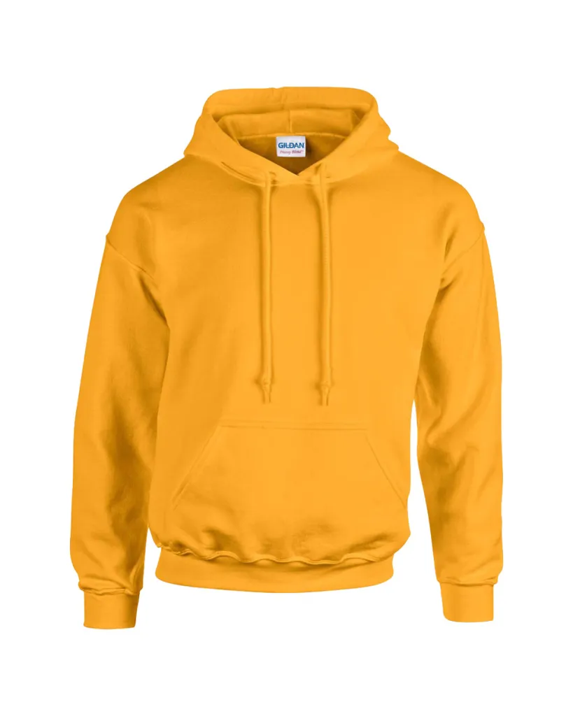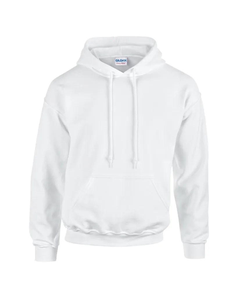 Majica s kapuljačom i prednjim džepom izrađena od 50% pamuka i 50% poliestera, 271 g/m² (bijeli hoodie 257 g/m²). Proizvod marke Gildan.