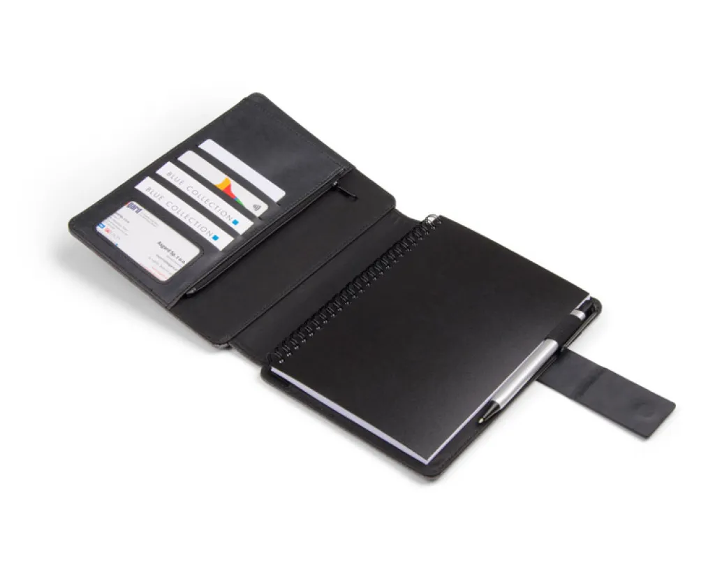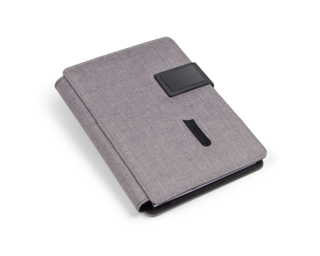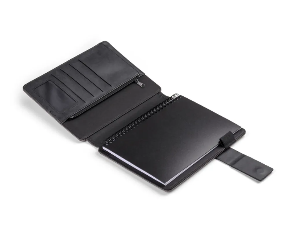 Vanjska obloga CARLIS mape izrađena je od tekstilnog materijala i sadrži dva džepa za vaš telefon i USB memoriju. U unutrašnjosti ćete pronaći izmjenjivu bilježnicu A5 (50 listova), veliki džep na zatvaraču, držač olovke i četiri mala džepa, uključujući jedan s prozorom. Mapa je se zatvara magnetskom kopčom. Vrh ima gumiranu metalnu značku koja omogućuje spektakularno graviranje koje će zasigurno istaknuti elegantnu prirodu mape.