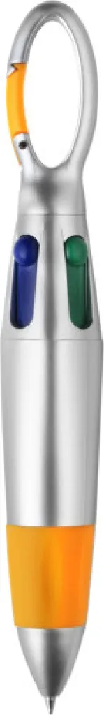ABS kemijska olovka s gumenim držačem, kopčom za pojas i četiri boje tinte: plava, crvena, crna i zelena.