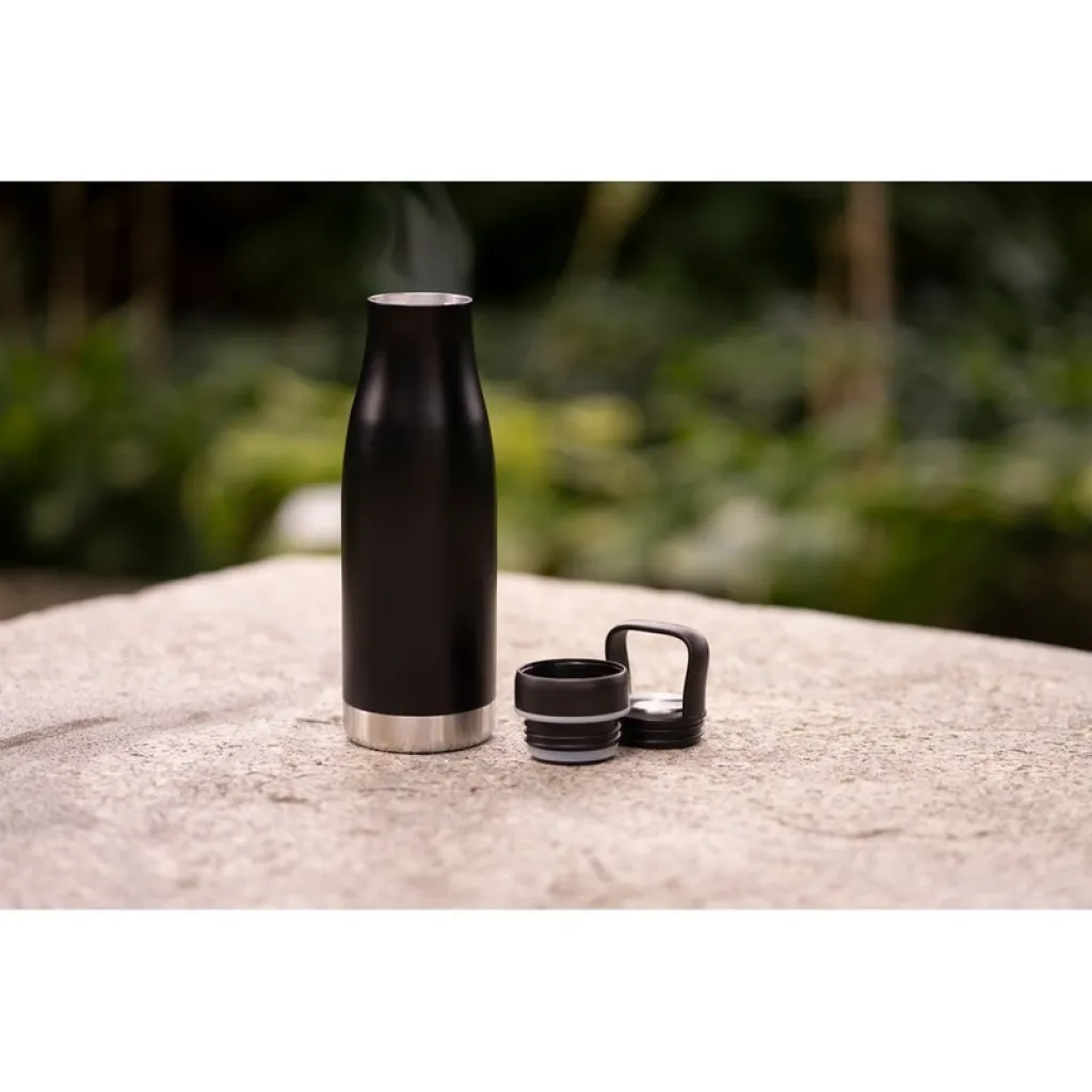 Mauro Conti termos boca od 500 ml s ručkom i metalnim prstenom, dvostruka vakuum stijenka, nehrđajući čelik izvana i iznutra, poklopac sa spremnikom, dolazi u pokon kutiji. Ljestvica toplinske izolacije: 4 + nepropusna.