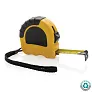 Traka od 5 metara izrađena od recikliranog ABS-a s certifikatom RCS (Recycled Claim Standard). Ukupni reciklirani sadržaj: 17% na temelju ukupne težine predmeta. RCS certifikat osigurava potpuno certificirani opskrbni lanac recikliranih materijala. S luksuznom TRP gumenom drškom za jednostavno držanje. S gumbom za otpuštanje/zaključavanje. S jednostranom žutom trakom od 19 mm s crnom kukom od ugljičnog čelika i poliesterskim remenom za zapešće. Pakirano u FSC® mix natron ambalaži.