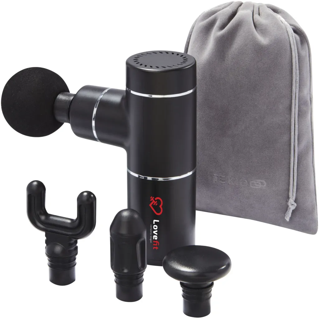 Lagani bežični masažni pištolj s funkcijama pogodnim za fitnes i fizikalnu terapiju. Pomaže za zagrijavanje prije vježbanja, oporavak od treninga niskog intenziteta ili ublažavanje napetosti mišića nakon treninga visokog intenziteta. Uključuje 4 glave za izvođenje različitih vrsta masaža na različitim dijelovima tijela. Snaga motora je 3200 o/min i ima 3 različite postavke brzine. Ugrađena punjiva baterija od 5000 mAh omogućuje do 3 sata korištenja pri maksimalnoj brzini. Razina buke 85 dB. Dolazi s vrećicom za lakše nošenje. Isporučuje se u premium kutiji od kraft papira sa šarenom naljepnicom.