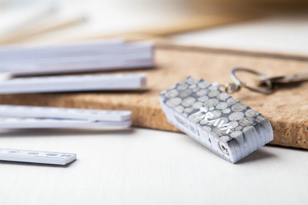 Plastični sklopivi mini metar s metalnim privjeskom za ključeve, 0,5 m.