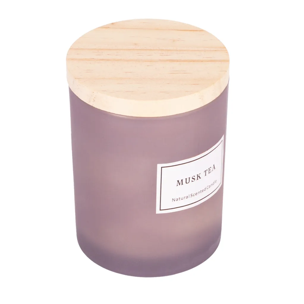 Mirisna svijeća u čaši s mirisom mošusa. Pakirano u kraft kutiji cijevastog oblika.