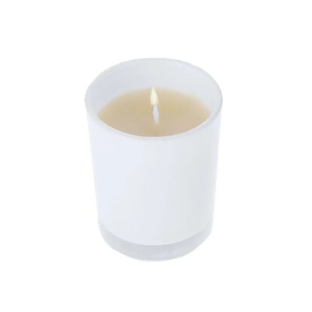 Mirisna svijeća u staklu. Dostupna u različitim mirisima: - bijela boja: miris vanilije. - Crna boja: aroma sandalovine