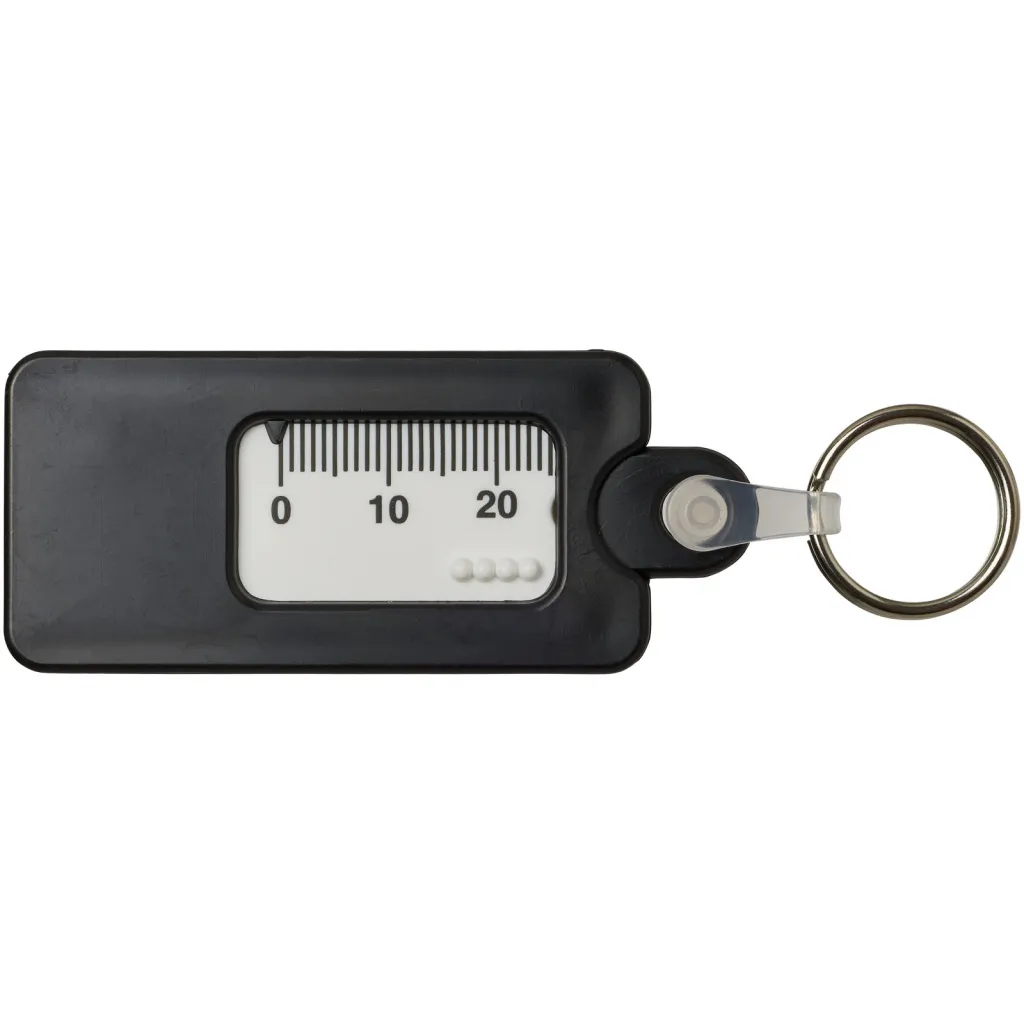 Privjesak za mjerenje utora gume. S ovim praktičnim privjeskom p-rovjerite da li vaše gume zadovoljavaju zakonske propise o minimalnom žljebu visine 5mm. Izrađen od reciklirane plastike.