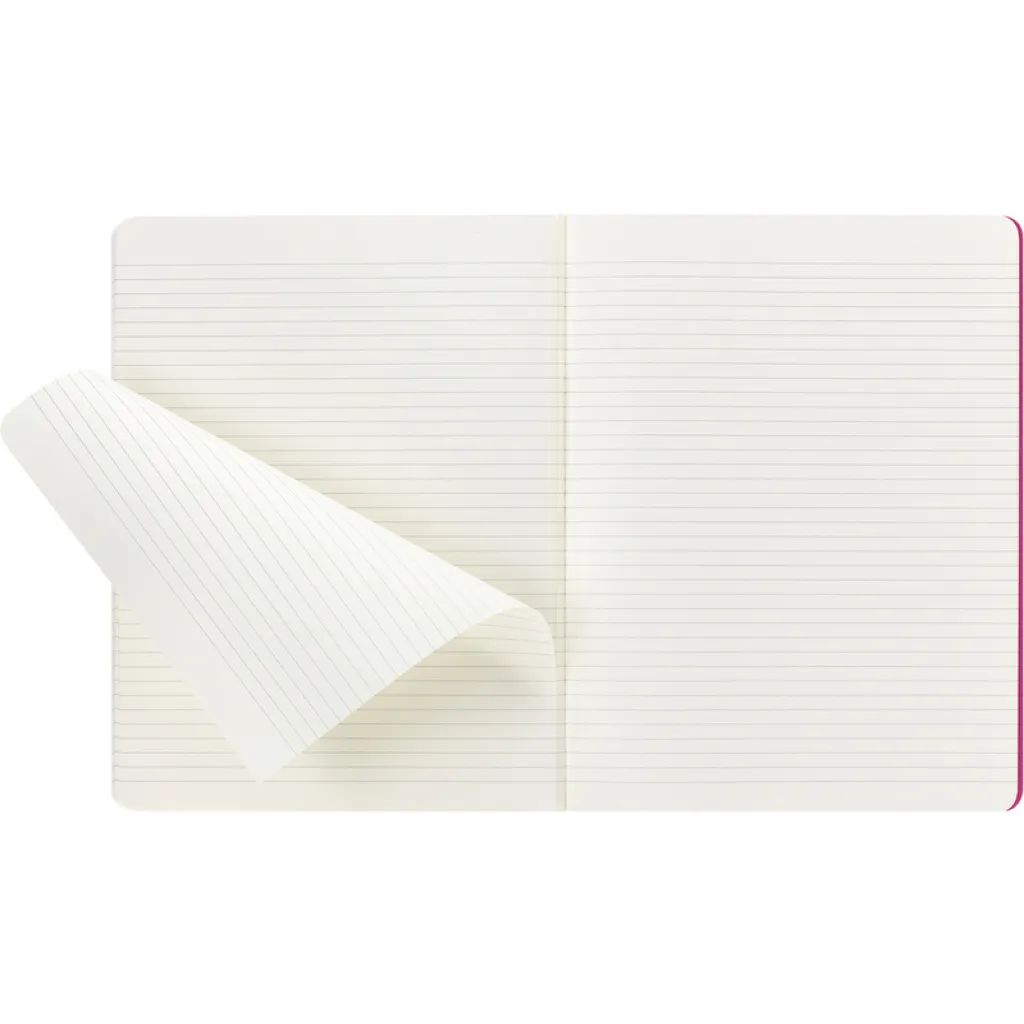 MOLESKINE Cahier Journal XL približno formata B5 sa 120 stranica na linije. Mekane korice s vidljivim šavovima na hrbatu. Unutarnji džep. Posljednjih 16 stranica se mogu odvojiti.
