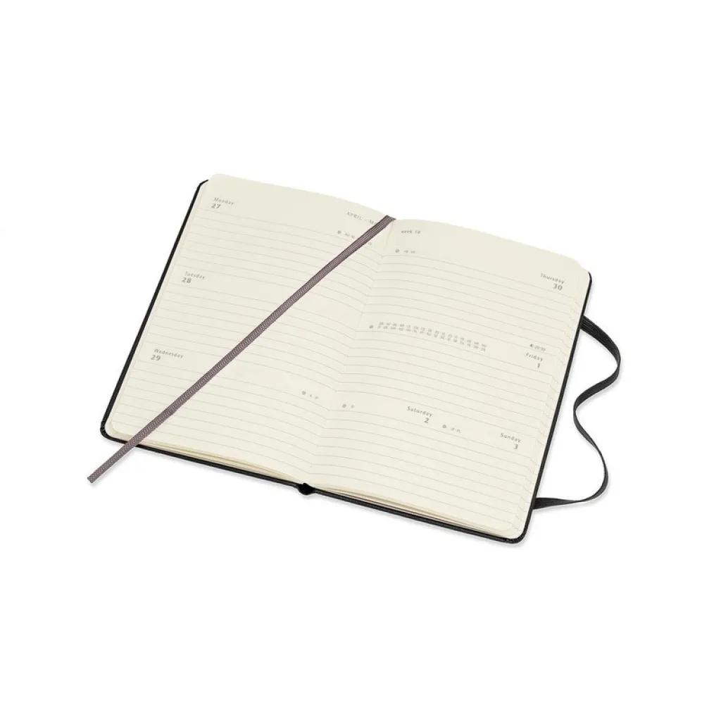 MOLESKINE rokovnik (džepni), tvrdi uvez, po tjednima (144 str.), vrpca za označavanje stranica i elastična traka za zatvaranje.