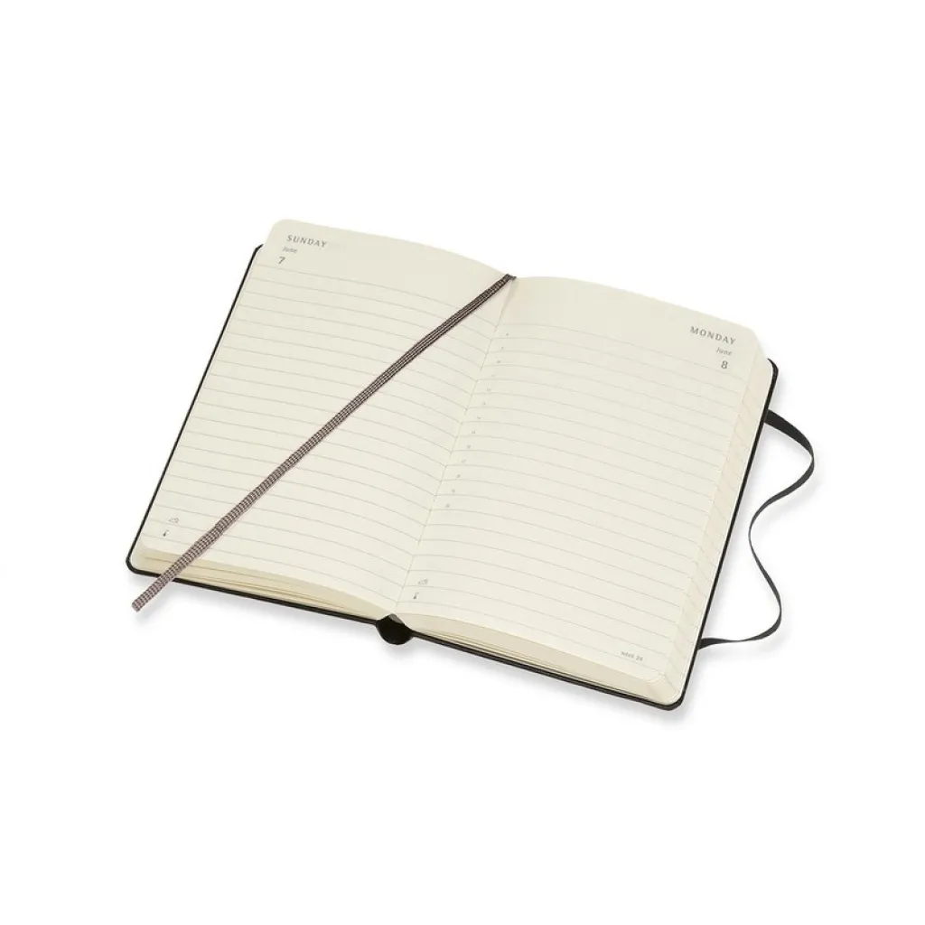 MOLESKINE rokovnik s notesom (džepni), tvrdi uvez, po danima (400 str.), vrpca za označavanje stranica i elastična traka za zatvaranje.