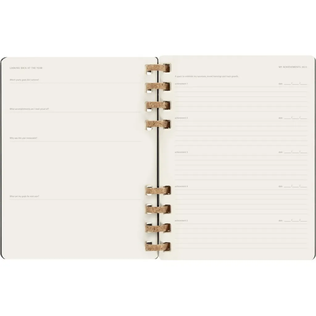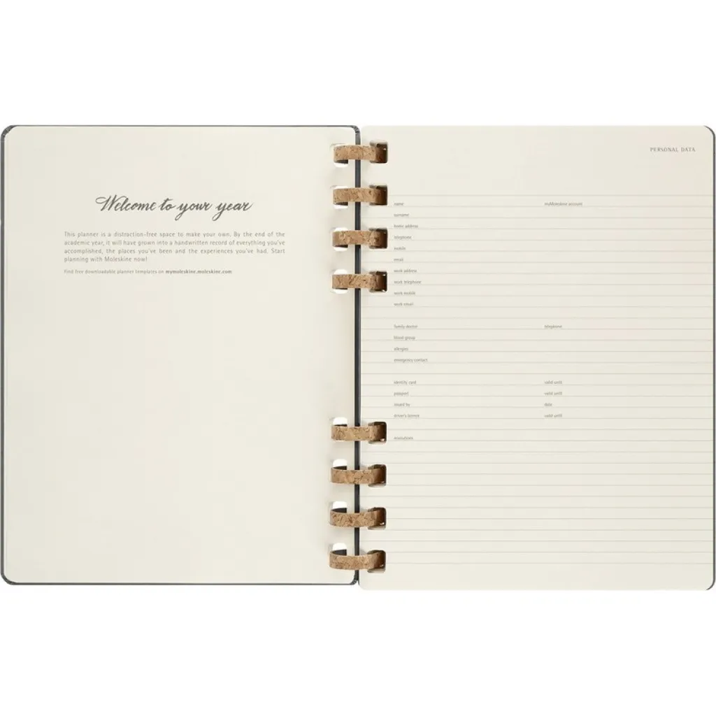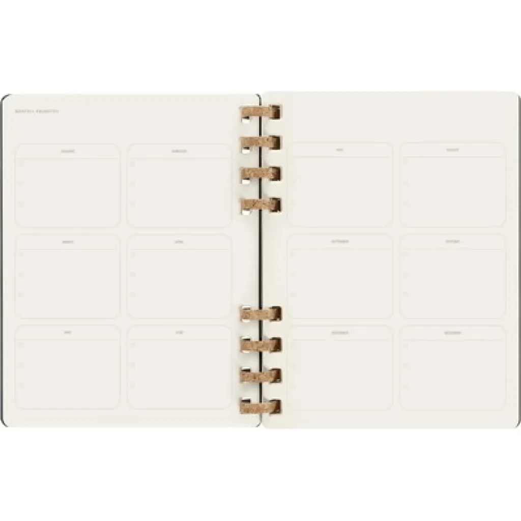 MOLESKINE godišnji spiralni planer XL (veličine približno B5), tvrde korice, mjesečni i tjedni-horizontalni plan (200 stranica), elastična traka za zatvaranje.