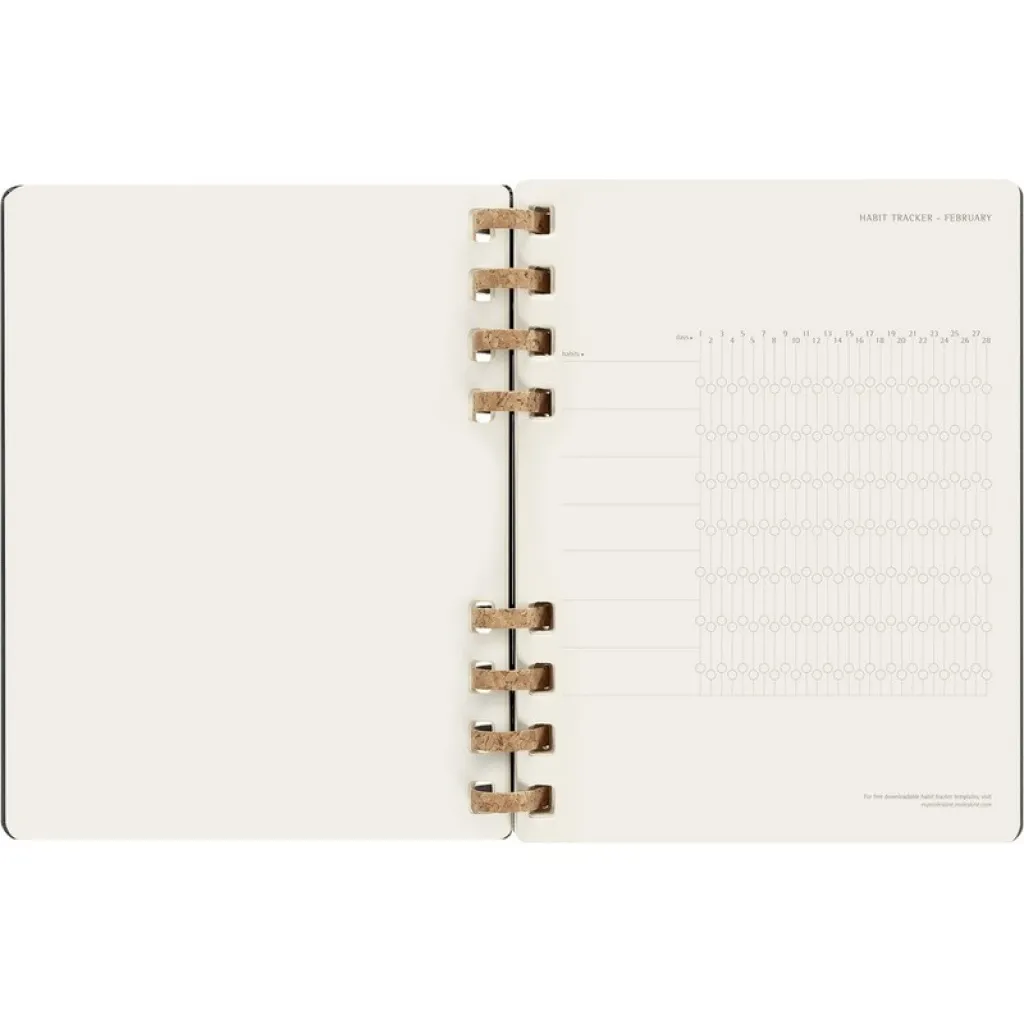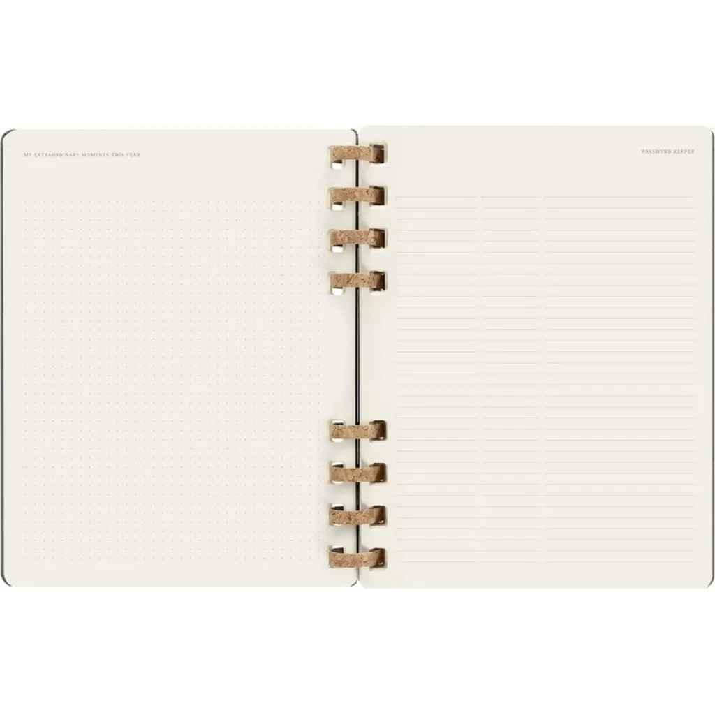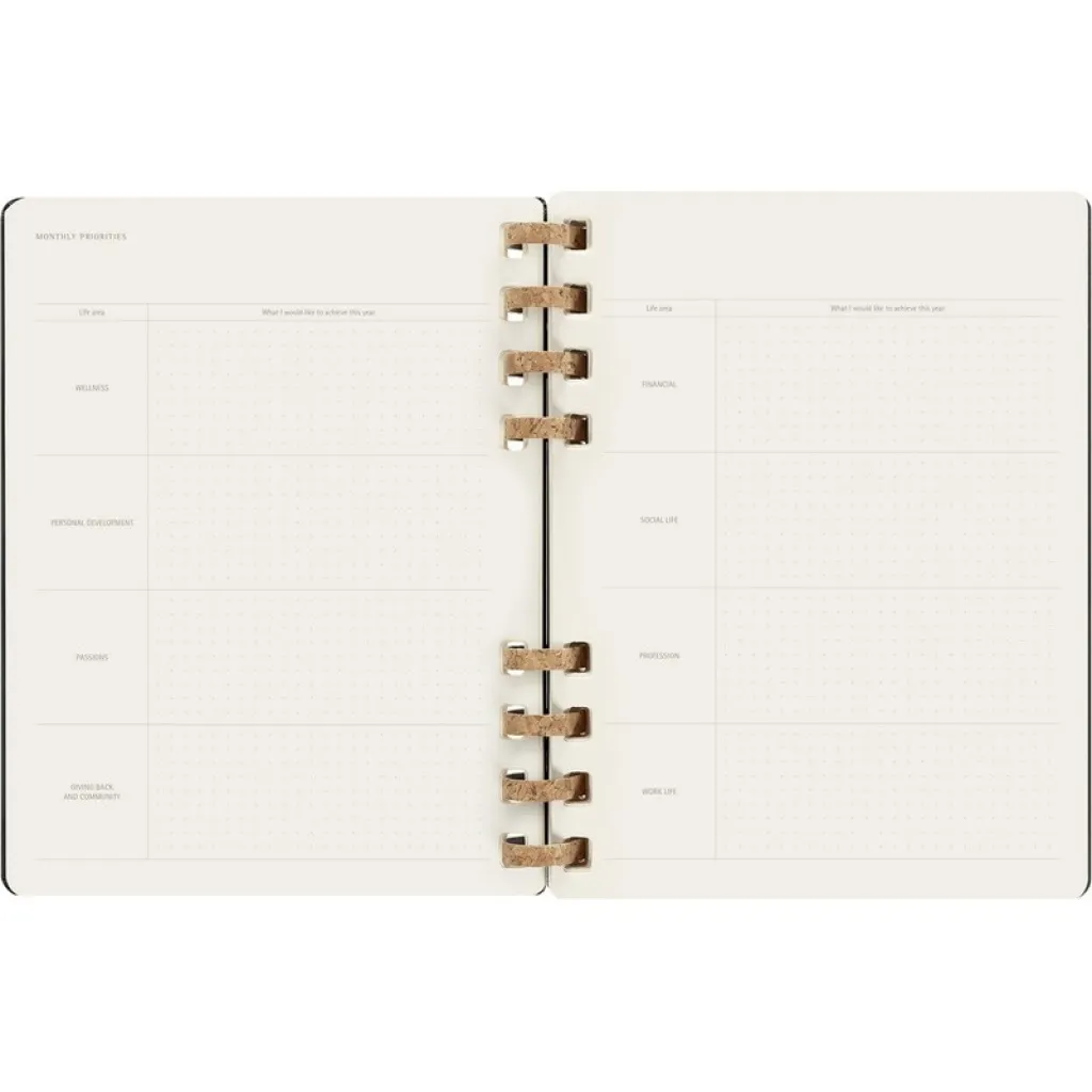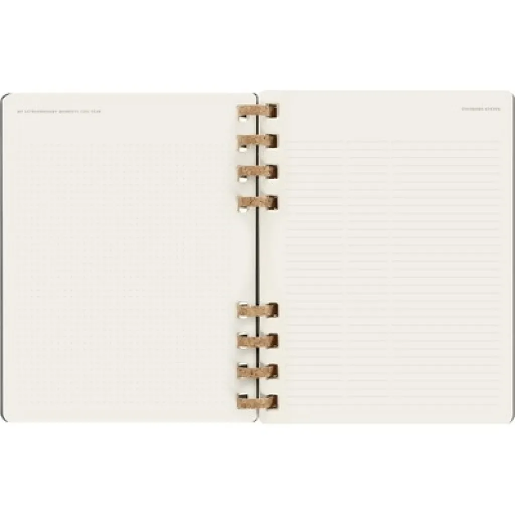 MOLESKINE godišnji spiralni planer XL (veličine približno B5), tvrde korice, mjesečni i tjedni-horizontalni plan (200 stranica), elastična traka za zatvaranje.