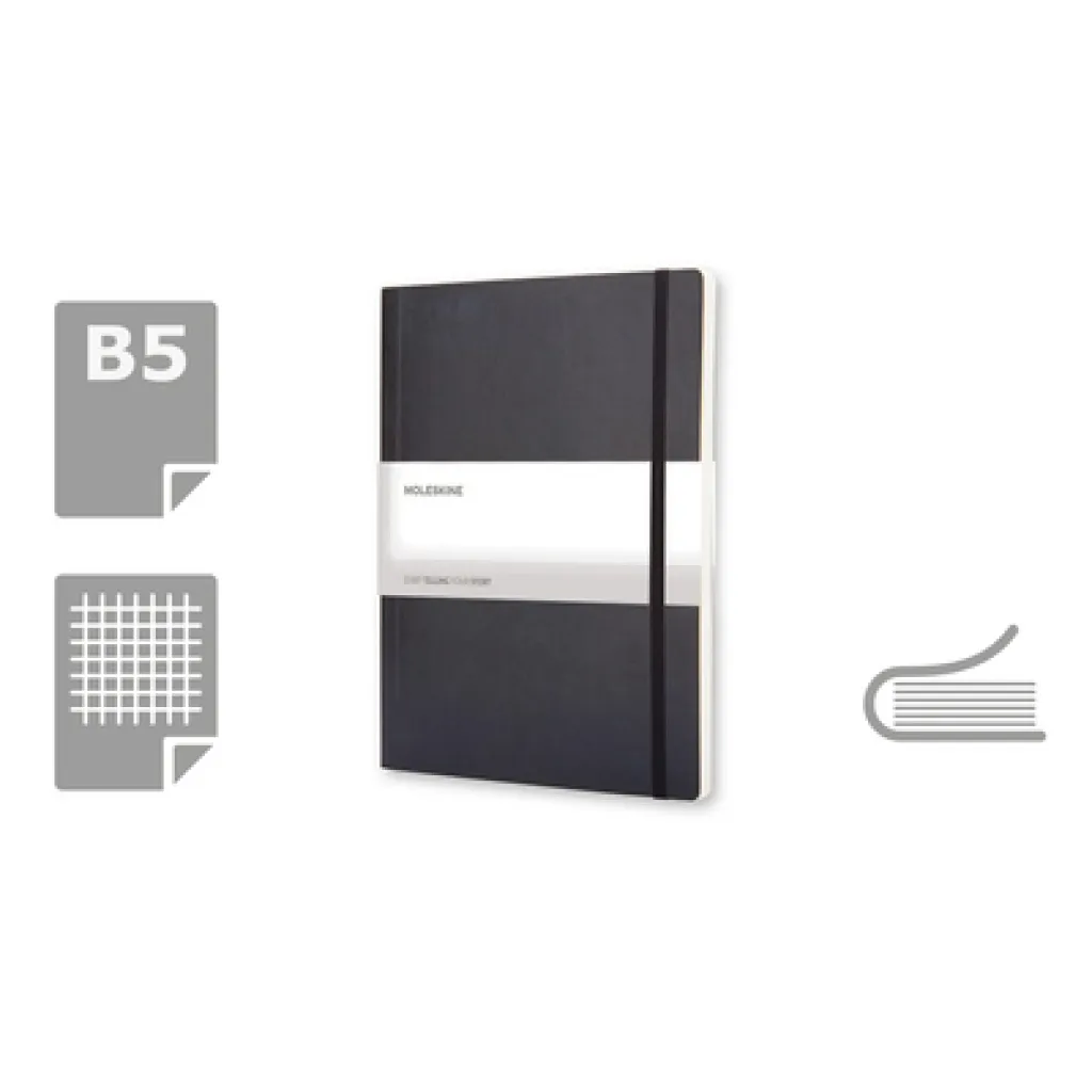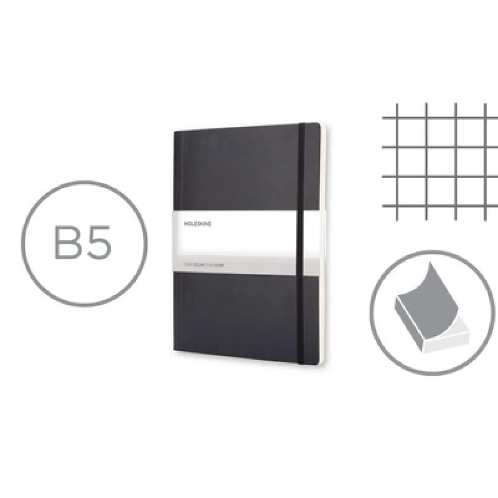 MOLESKINE notes (XL), 192 stranice s kvadratićima, meki uvez, unutarnji džep, vrpca za označavanje stranica i elastična traka za zatvaranje.
