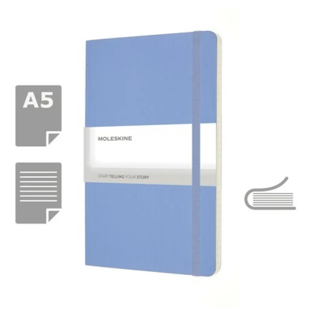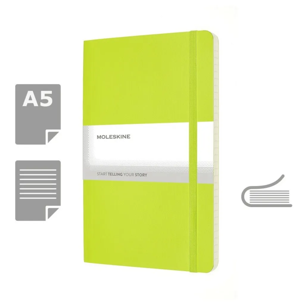 MOLESKINE notes (veličine približno A5), 192 stranice s crtama, meki uvez, unutarnji džep, vrpca za označavanje stranica i elastična traka za zatvaranje.