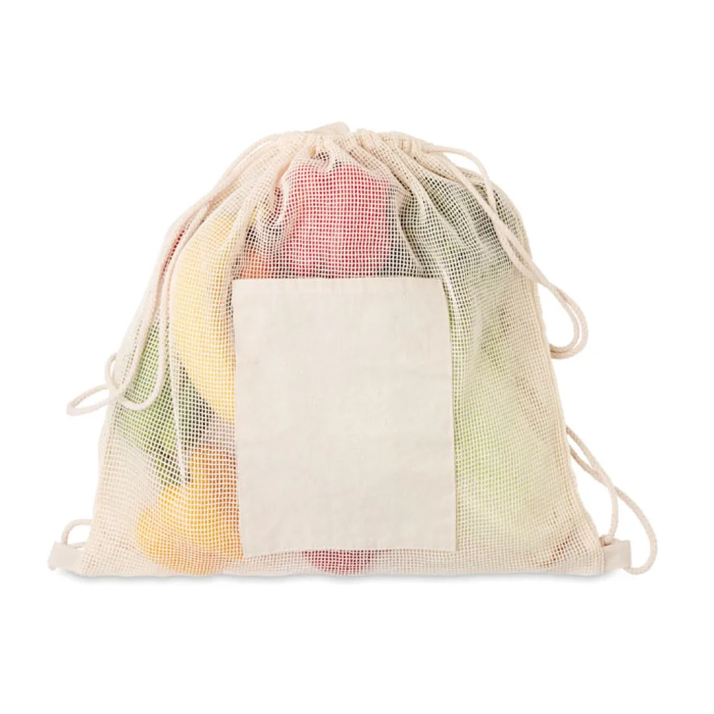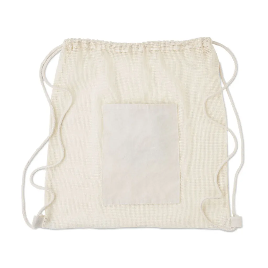 Mrežasta torba s vezicama (103 gr/m²) i pamučnim prednjim džepom (170gr/m²)
