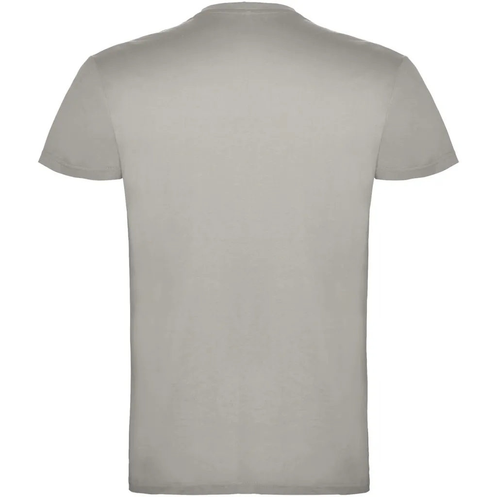 Majica kratkih rukava s dvoslojnim okruglim izrezom od elastina, izrađena od cjevaste tkanine za odrasle. Pojačani pokriveni šavovi na ovratniku. Etiketa koja se može ukloniti. Model je visok 190 cm i nosi veličinu L.