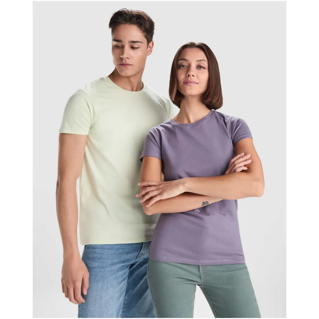 Majica kratkih, cjevastih rukava, izrađena od organskog pamuka s OCS certifikatom. S 1x1 rebrastim okruglim ovratnikom, ojačanim prekrivenim šavovima na ovratniku te s etiketom koja se može lako ukloniti. OCS organska tkanina.