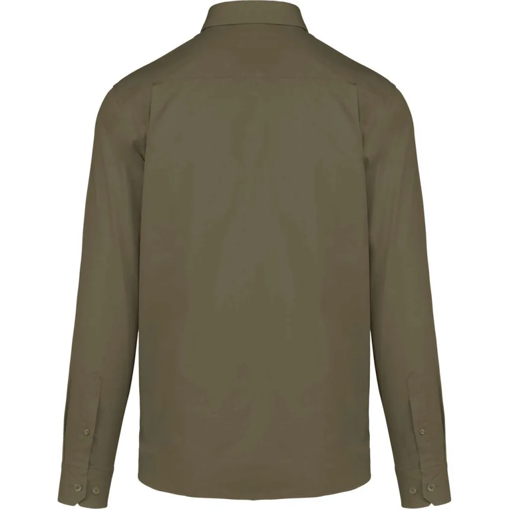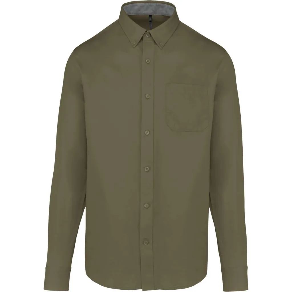 100% pamuk, keper tkanina s breskvastim mekanim dodirom. Ovratnik na kopčanje. Gumbi u boji košulje. Džep na prsima s lijeve strane. Unutrašnji dio ovratnika i rukava u Oxford srebrnoj boji. Leđa s 2 bočna nabora i podstavljenim jarmom. Podesiva manšeta s jezičastim krajevima. Rezervni gumb.