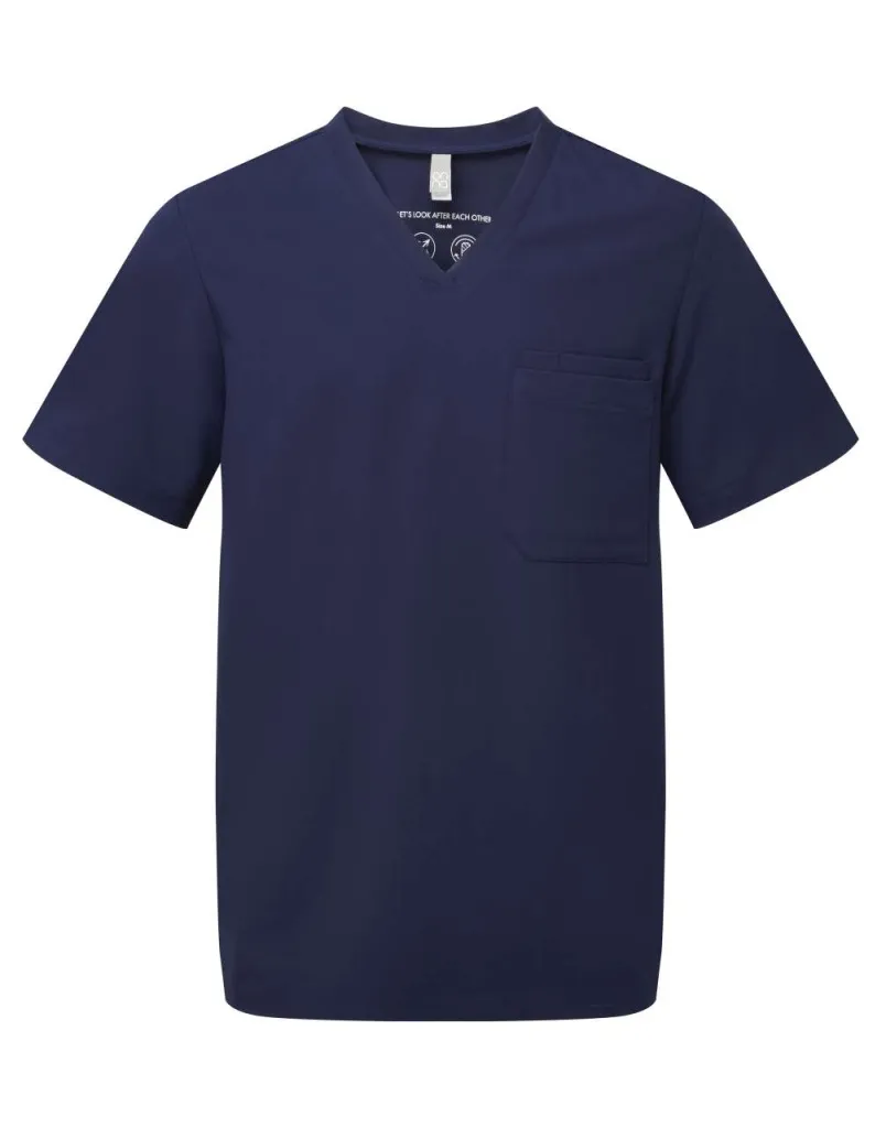 - Stil s V-izrezom i lijevim džepom na prsima