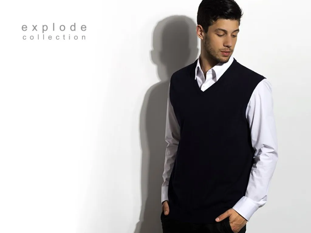 FORD Muški pleteni pulover bez rukava na V-izrez - EXPLODE