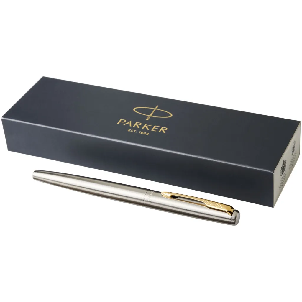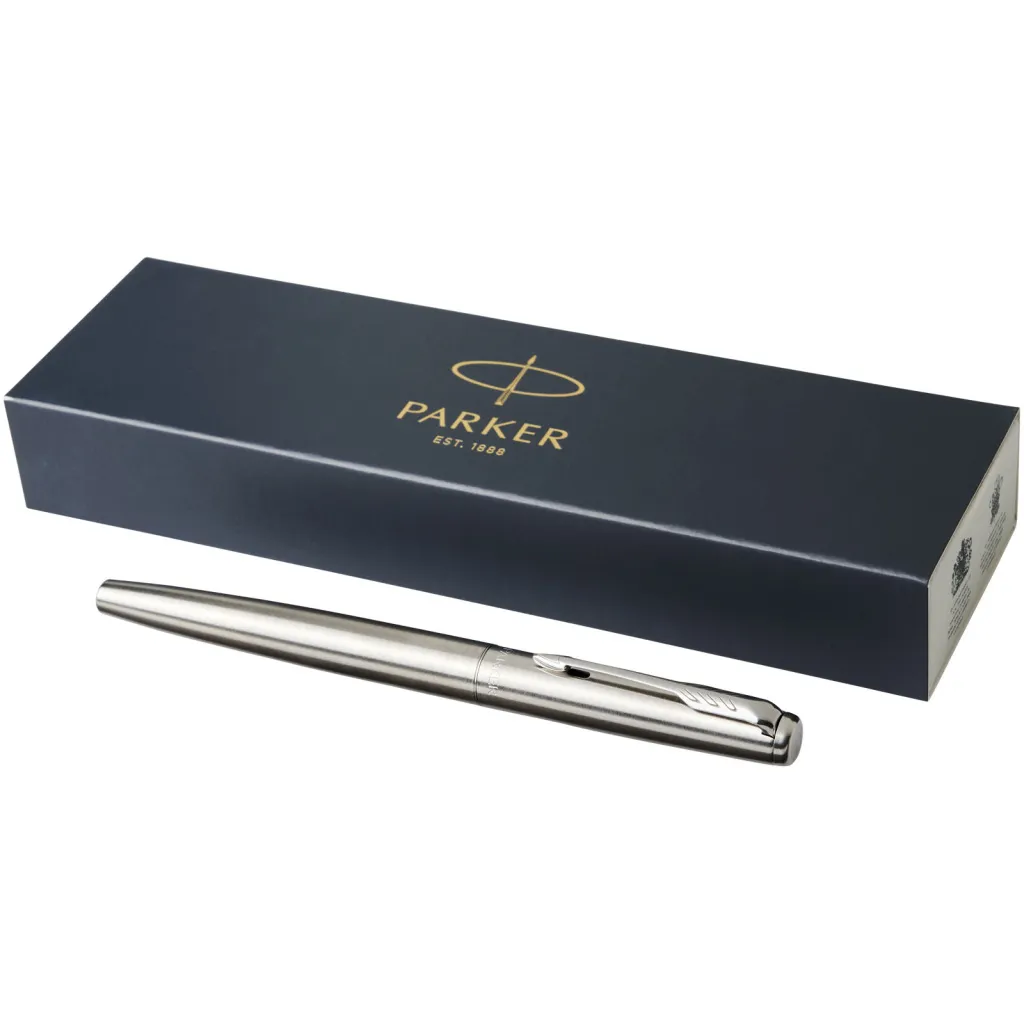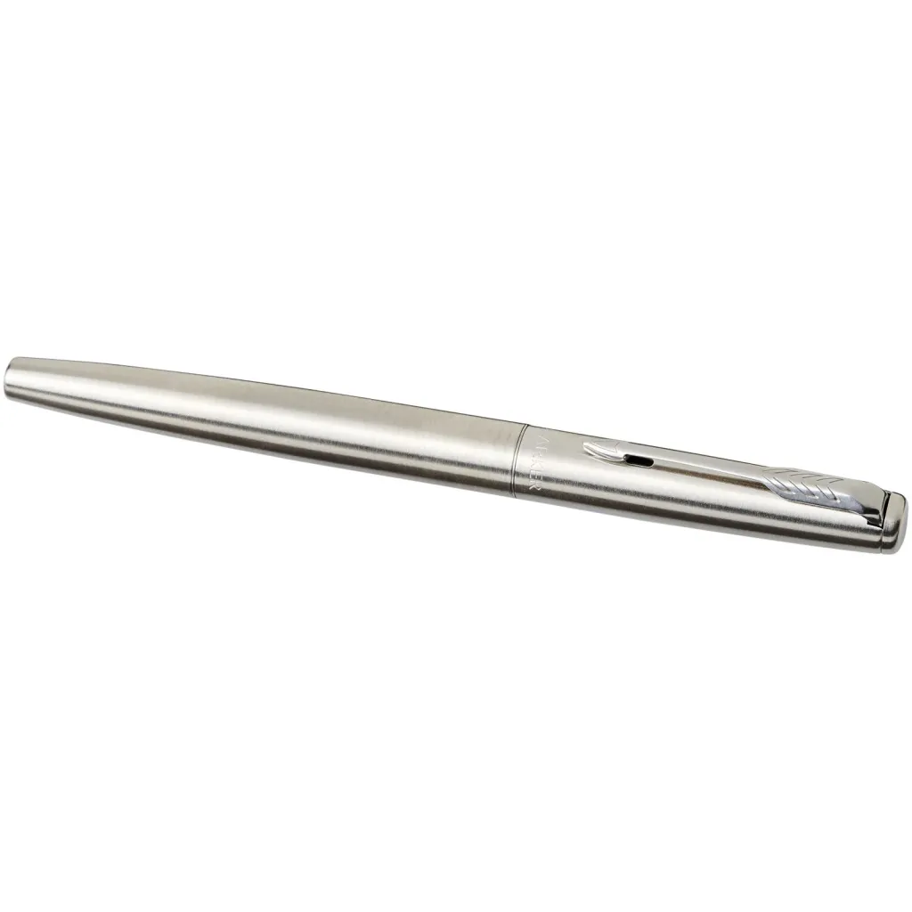 Nalivpero Jotter moderna je interpretacija izvorne ikone. Sadrži tijelo od nehrđajućeg čelika s krom oblogom. Pakirano u poklon-kutiju Parker. Debljina vrha: fini (0,5 mm).