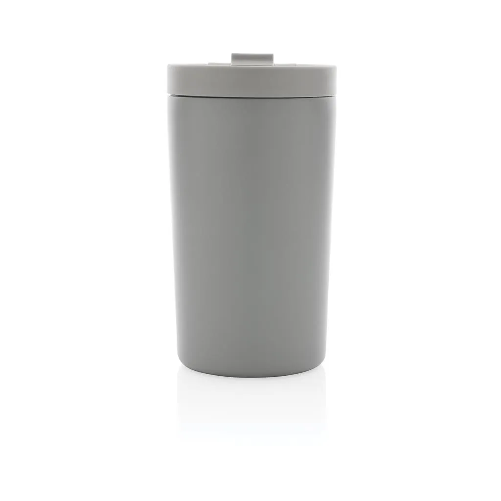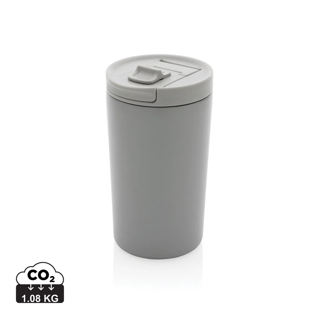 Ova vakuum nepropusna šalica s dvostrukom stijenkom savršene je veličine za vaše piće. Njen nepropusno zatvoreni preklopni poklopac dizajniran je za jednostavno otvaranje/zatvaranje i korištenje u pokretu. Vakuumska izolacija održava napitke toplima do 5 sati i hladnima do 15 sati. Izrađena je od recikliranih materijala s certifikatom RCS (Recycled Claim Standard). RCS certifikat osigurava potpuno certificirani opskrbni lanac recikliranih materijala. Ukupni reciklirani sadržaj: 80% na temelju ukupne težine predmeta. Kapacitet: 300 ml. Bez BPA-a i može se samo ručno prati.