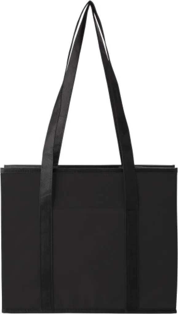 Sklopivi organizator za automobil od netkane tkanine (80 gr/m²) s dva dugačka držača, dva kratka držača, prednjim džepom i odgovarajućim kartonskim dnom.