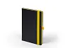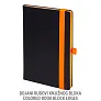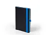 KNJIŽNI BLOK: format: 14x21 cm, opseg: 192 str., sadržaj: osobni podaci i crtovlje, tisak: u 1 boji na bijelom papiru gramature 80 g/m2, zaobljeni uglovi, predlist, zalist i džepić tonirani u sivu boju • KORICE: korica je izrađena od koagulatnog materijala koji je preporučljiv za termo tisak, foliotisak, sitotisak i digitalni tisak, zaobljeni uglovi, gumice u raznim bojama, gumica-držač za olovke, džepić na zadnjoj unutarnjoj korici • POSEBNOSTI: bojani rubovi knjižnog bloka u boji gumice • PAKIRANJE: 20 kom.