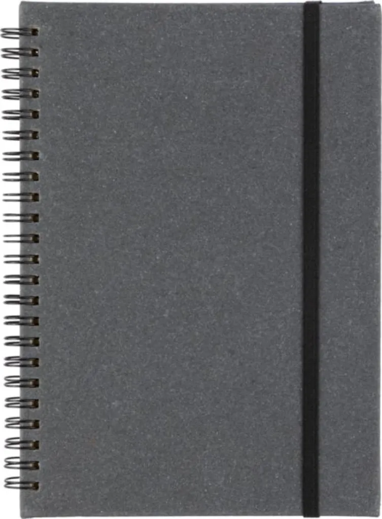 Notes A5 formata od reciklirane kože, s 80 stranica (70 g/m²). Na poleđini korica utisnut je motiv reciklirane kože.