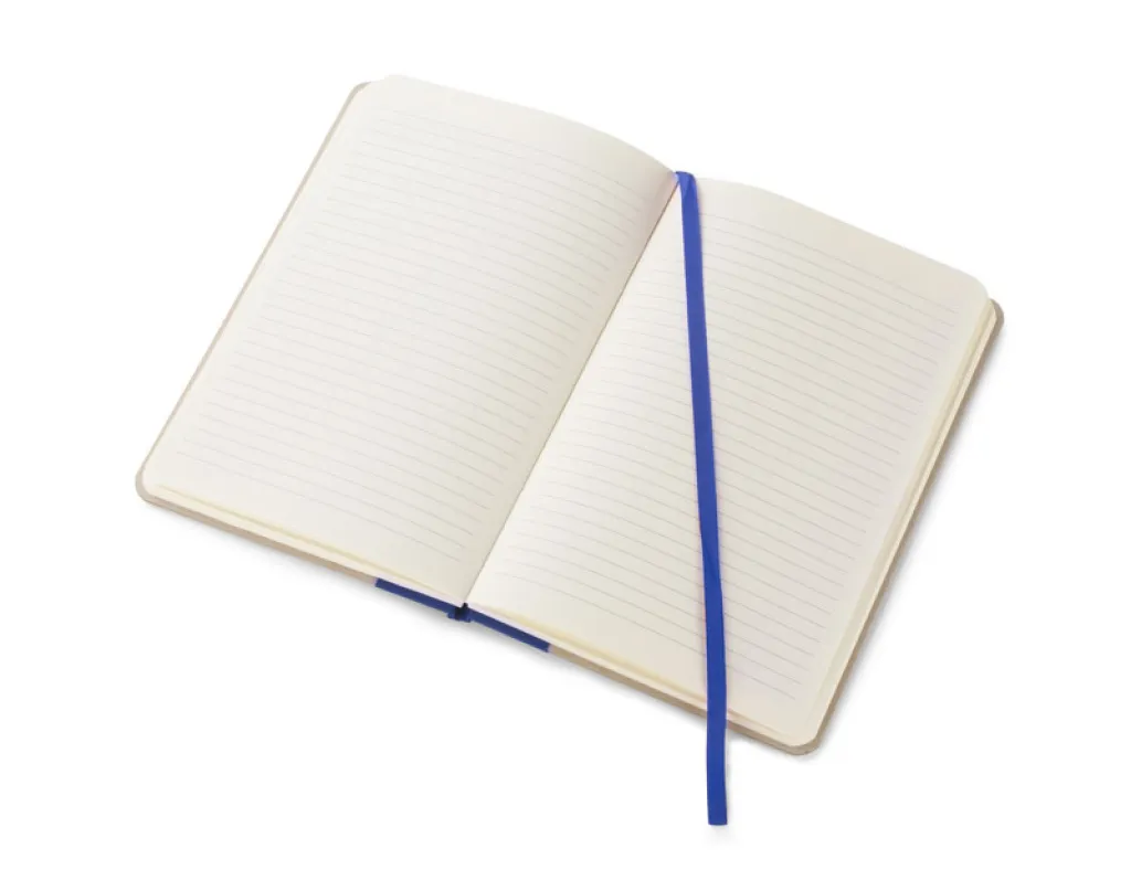 Notes s omotom izrađenim od čvrstog, gustog kartona u prirodnoj boji i tkaninom u boji na hrptu. Papir koji se koristi ima FSC certifikat.