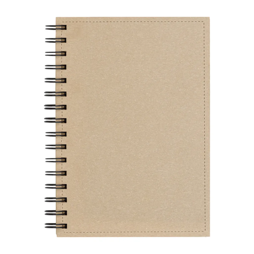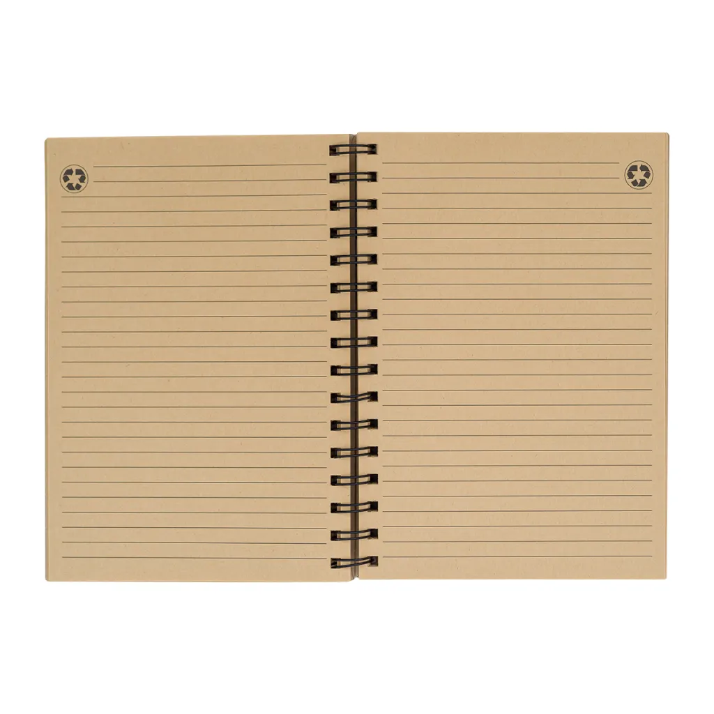 Notes s crtama od 70 stranica od recikliranog smeđeg papira (70g/m2). Tvrdi uvez (1250 g/m2) na metalnoj spirali.