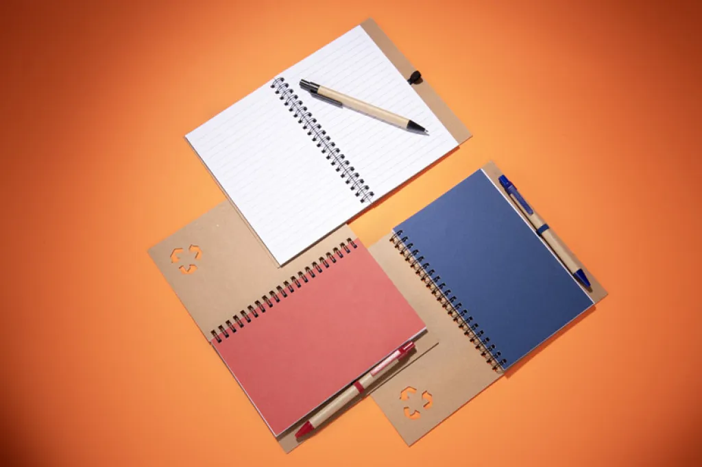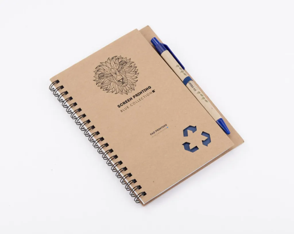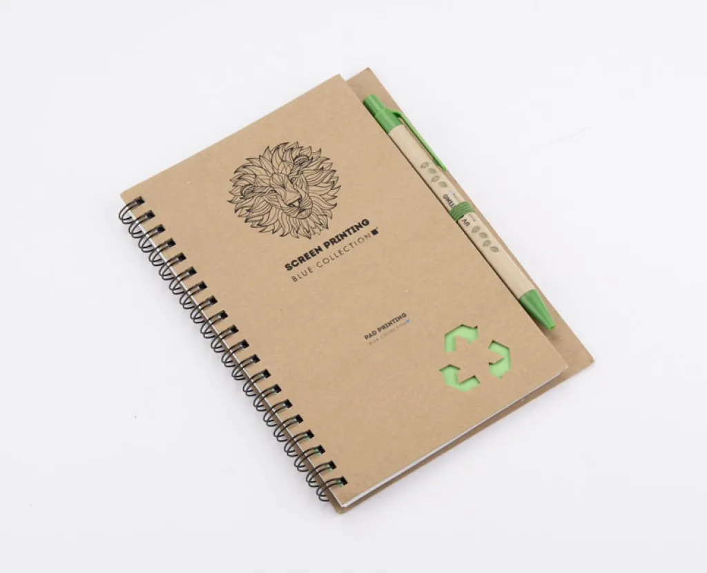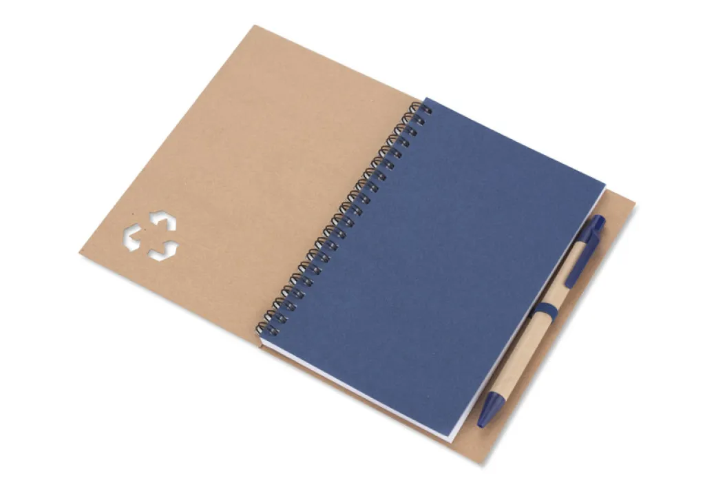 SERENO je spiralni notes s klasičnim papirnatim koricama. Ima 70 stranica s crtama. Uz notes priložena je kemijska olovka s profiliranim papirnatim tijelom. Završna obrada olovke odgovara boji razdjelnika bilježnice. Kemijska olovka s plavim punjenjem.