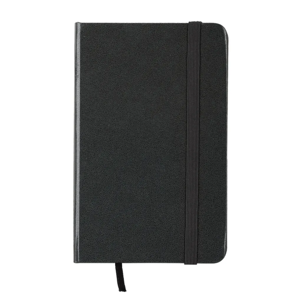 Notes s tvrdim koricama, veličine 130x210, s elastičnom trakom za zatvaranje. Krem papir s kvadratićima, 70 g, 160 stranica.