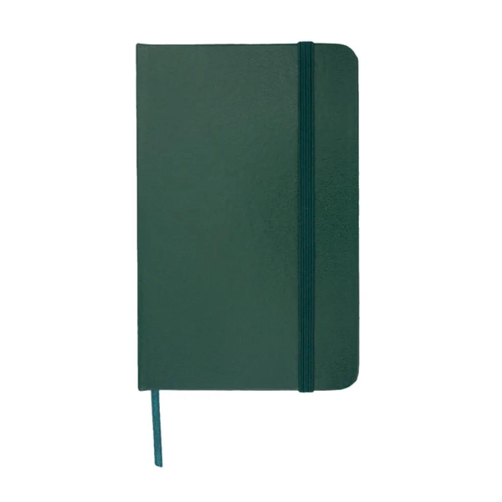 Notes s tvrdim koricama, veličine 90x140, s elastičnom trakom za zatvaranje. Krem papir s kvadratićima, 70 g, 160 stranica.