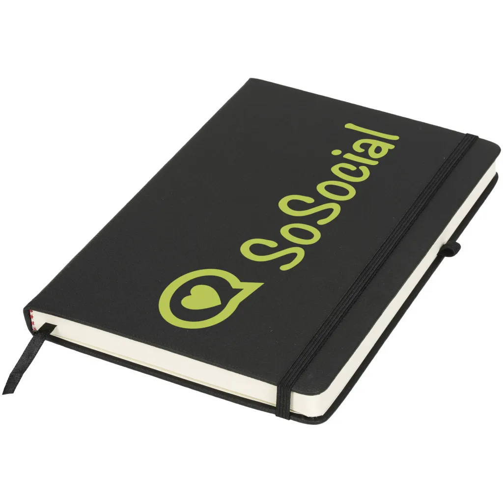 Notes modernog dizajna s visokokvalitetnim koricama, idealan za dotisak logotipa i podataka vaše tvrtke. Dostupan je u nekoliko boja. Sadrži elastičnu traku za zatvaranje, držač kemijske olovke, vrpcu za oznaku stranice i unutarnji džep na stražnjoj korici. Sadrži 128 listova papira bež boje s crtama (70g/m2).