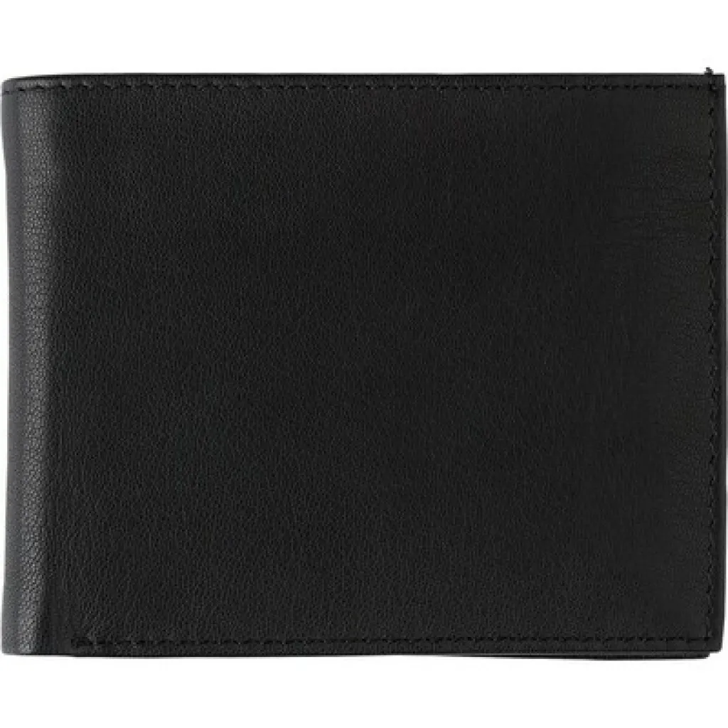 Novčanik s RFID zaštitom, pretinac za kovanice s gumb zatvaranjem i drugi džepovi za novčanice ili kartice.