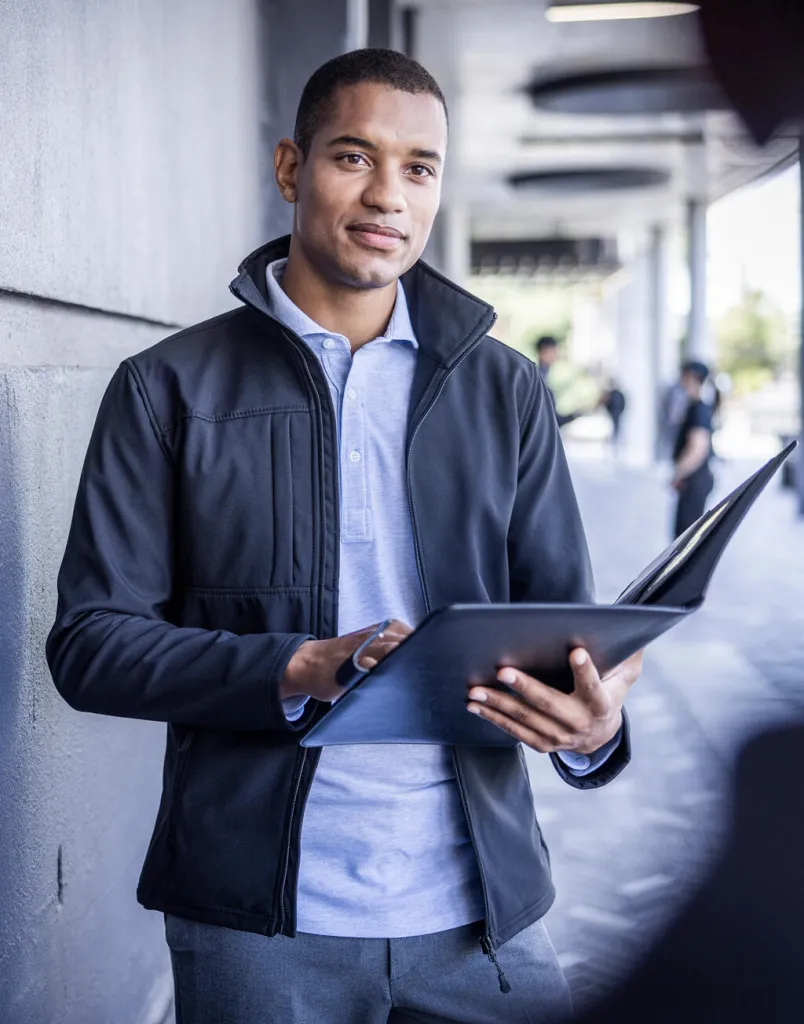 ·100% poliester ·3-slojna membranska tkanina ·Toplo prešani i tkani softshell XPT, vodonepropusna i prozračna tkanina ·ATL trajni vodoodbojni završni sloj ·Patentni zatvarač cijelom dužinom jakne s unutarnjom zaklopkom ·2 niža džepa i 1 džep na prsima s patentnim zatvaračima ·Donji rub podesive širine pomoću ušivene elastične trake s automatskim stoperima