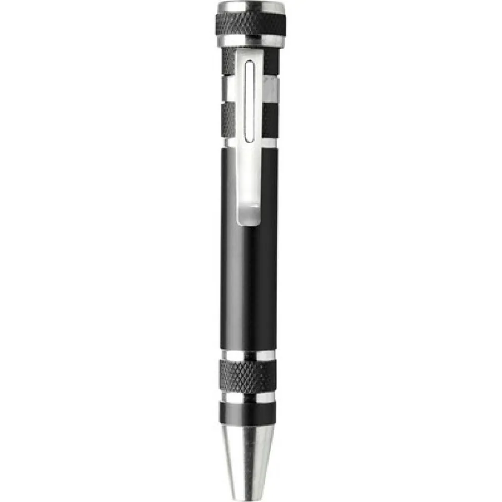 Odvijač u obliku olovke s 4 plosnate glave i 4 Philips odvijača, s kopčom.