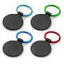 Okrugli privjesak za ključeve s posebnim prostorom za personalizaciju, gravura otkriva površinu u boji. Crna poklon kutija uključena. Proizvod je izrađen od metala.