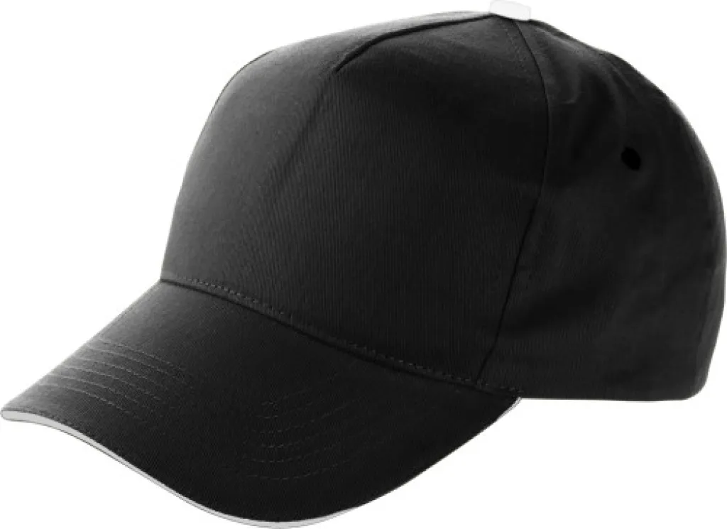 Kapa od 100% pamuka s pet panela, sendvič vrhom i kopčanjem na čičak.