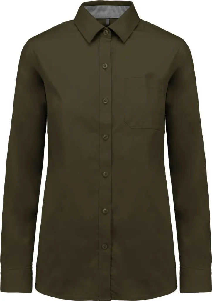100% pamuk. Keper tkanina s breskvastim mekanim dodirom. Podudaranje gumba. Džep na prsima s lijeve strane. Kontrast oxfordski srebrni stalak za unutrašnji ovratnik i manžete. Leđa s jednostrukim i obloženim jarmom. Podesiva manžeta s jezičastim krajevima. Rezervni gumb.