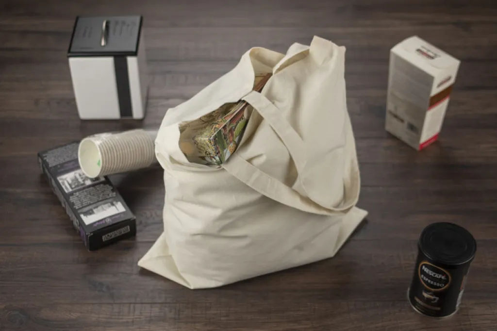 Organska torba s dugim ručkama napravljena od prirodnog pamuka (140 g/m2), 42x38 cm.