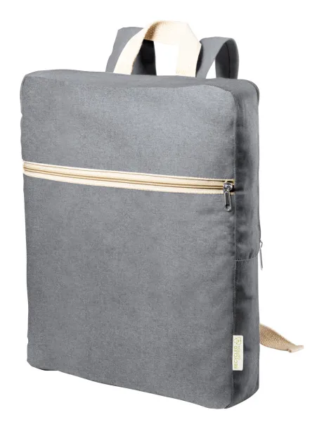 Ruksak od 100% recikliranog pamuka (275 g/m²) s pretincem s patentnim zatvaračem i prednjim džepom. S prepoznatljivom etiketom 'reciklirani pamuk'.