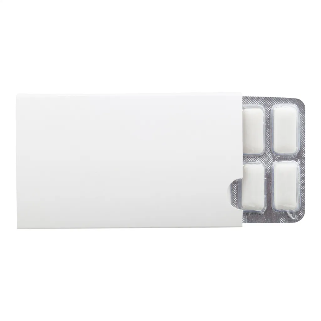 12 žvakaćih guma bez šećera u "mjehuriću" s papirnatim full color omotom izrađenim po narudžbi u. Minimalna količina narudžbe: 100 kom.