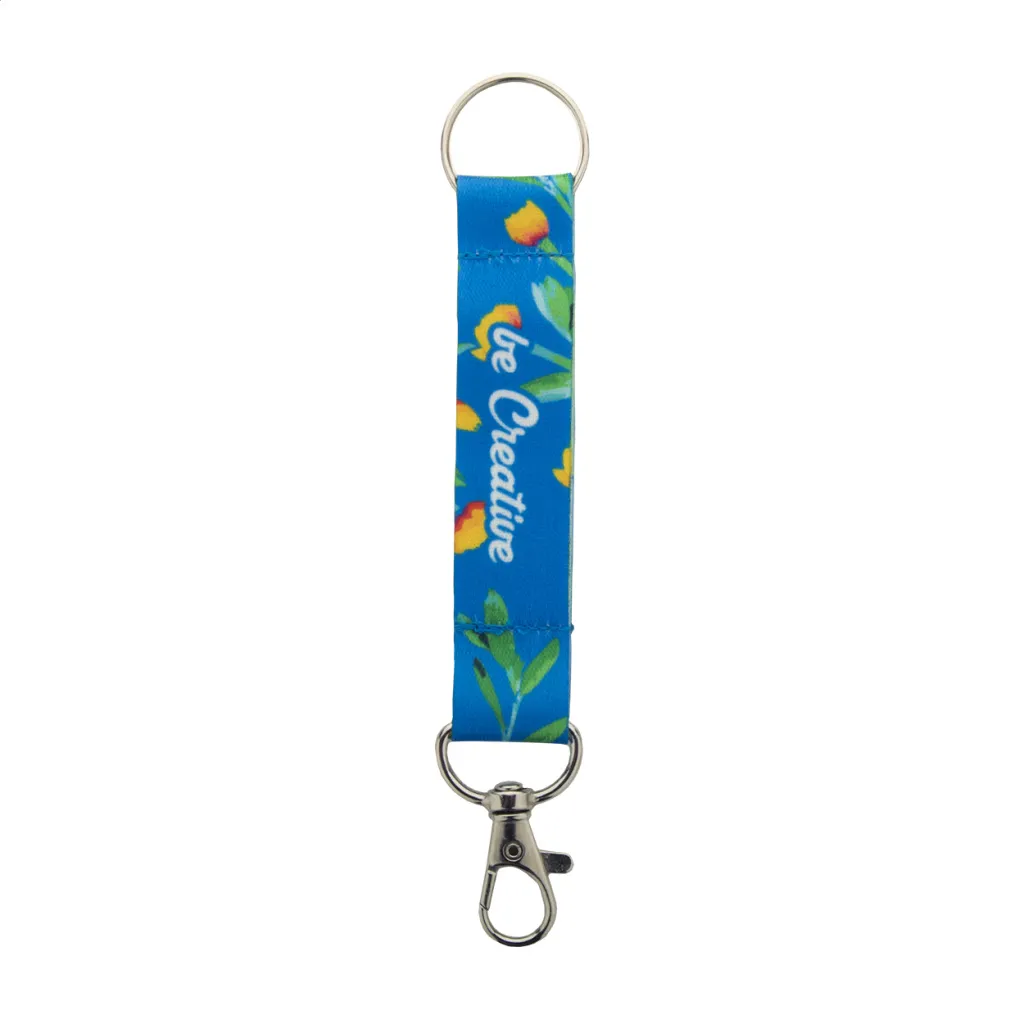 Izrađen po narudžbi, mini privjesak za ključeve od RPET poliestera sa sublimacijskom tiskanom grafikom na obje strane. S metalnim karabinerom i prstenom. Minimalna količina narudžbe: 100 kom.