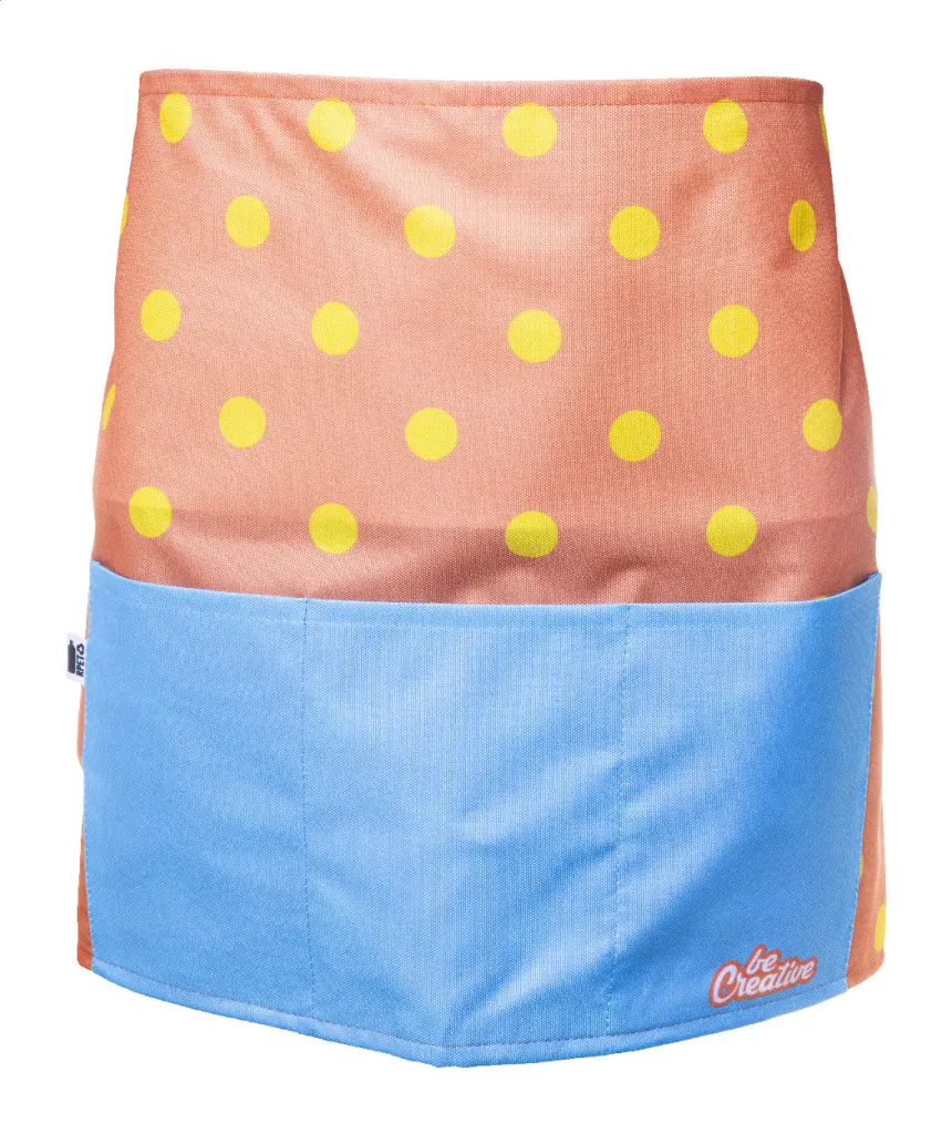 Personalizirana pregača za bistro izrađena od 600D RPET poliestera s trostrukim prednjim džepom, sublimacijskim otiskom po cijeloj površini i prepoznatljivom RPET etiketom. Minimalna količina za narudžbu: 25 kom.